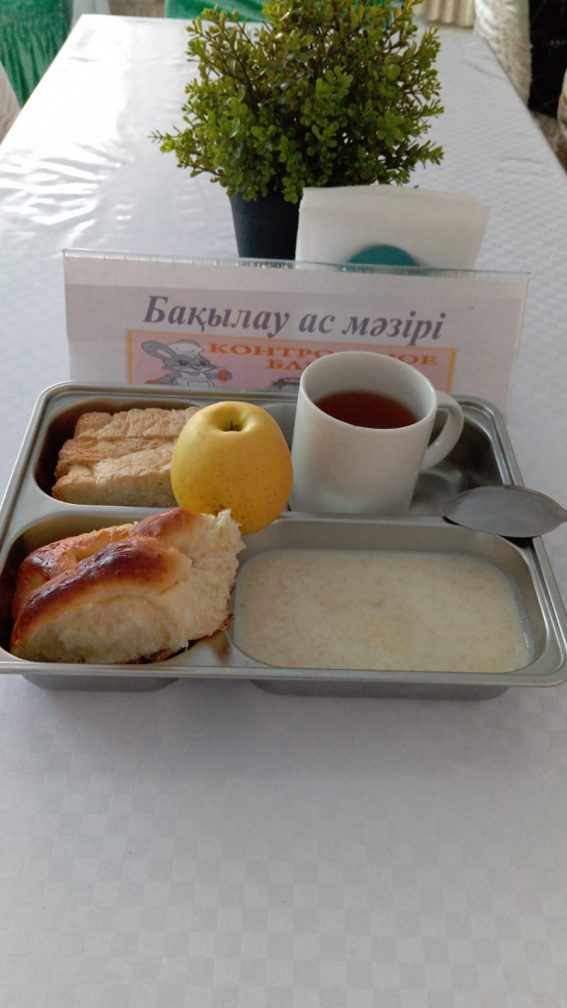 Бақылау ас мәзірі Май қосылған сүтте пісірілген тары ботқасы Кептірілген жемістен компот Тәтті нан Қара бидай наны Алма