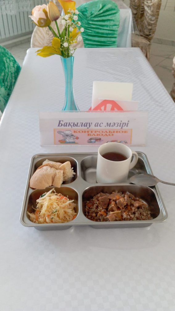 Бақылау ас мәзірі Ұсақталған қарақұмық Сиыр етінен гуляш Көкөніс салаты Лимон қосылған шай Қара бидай наны