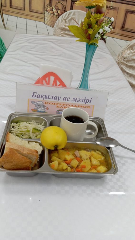 Бақылау ас мәзірі Үйдегідей дайындалған қуырдақ Көкөніс салаты Итмұрын қосылған шай Қара бидай наны Алма