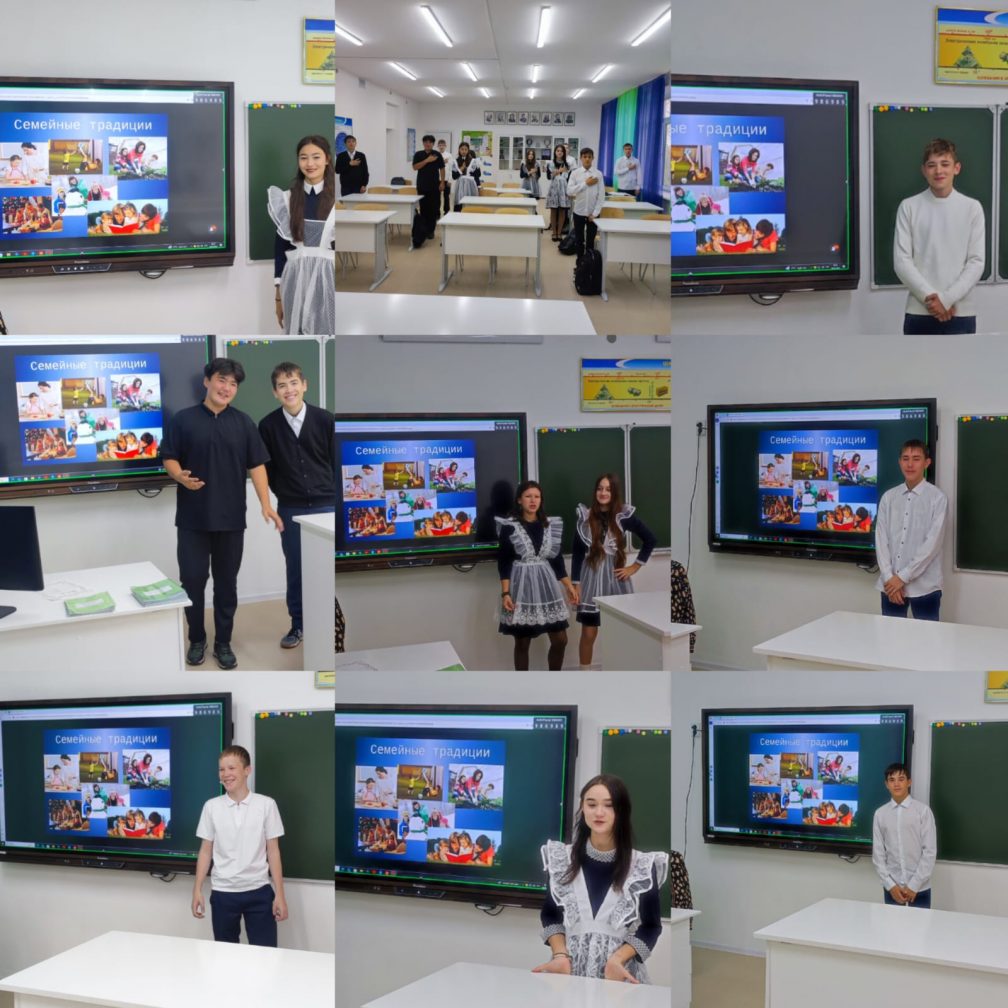Сынып сағатының мақсаты - білім алушылардың отбасылық құндылықтарға, дәстүрлерге және өз отбасының тарихына құрметпен қарауын қалыптастыру. Сынып сағаттары барысында оқушылар "отбасылық дәстүрлер" ұғымымен танысты, өз отбасыларының тарихымен бөлісті, ұрпақтар сабақтастығының маңыздылығын, сондай-ақ жеке тұлғаны тәрбиелеудегі отбасының рөлін талқылады.