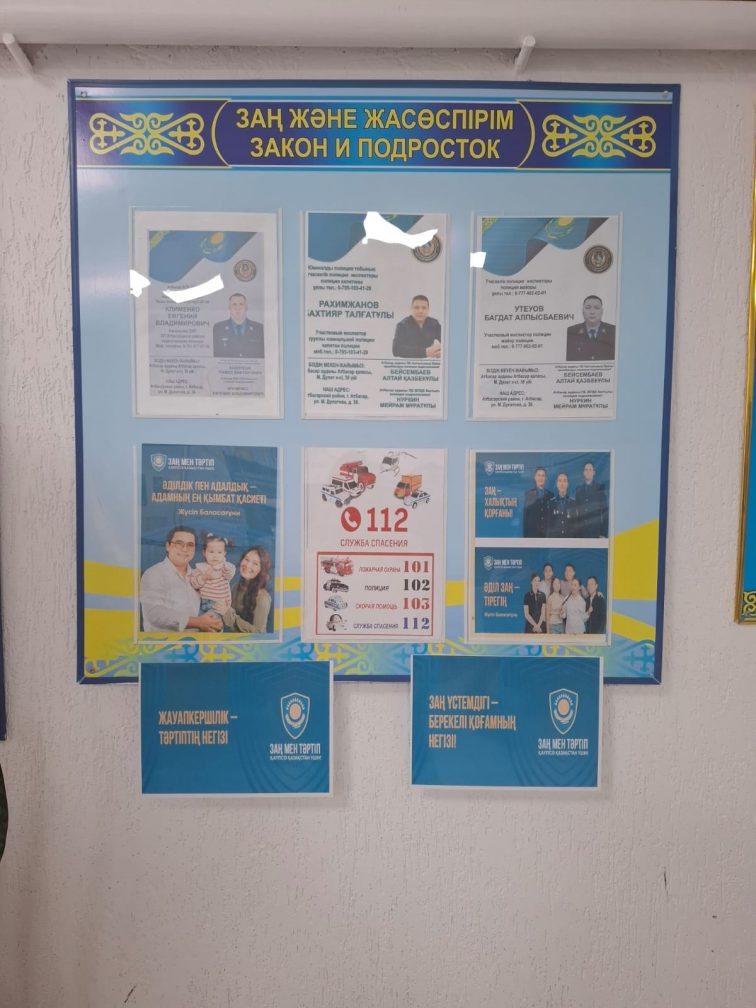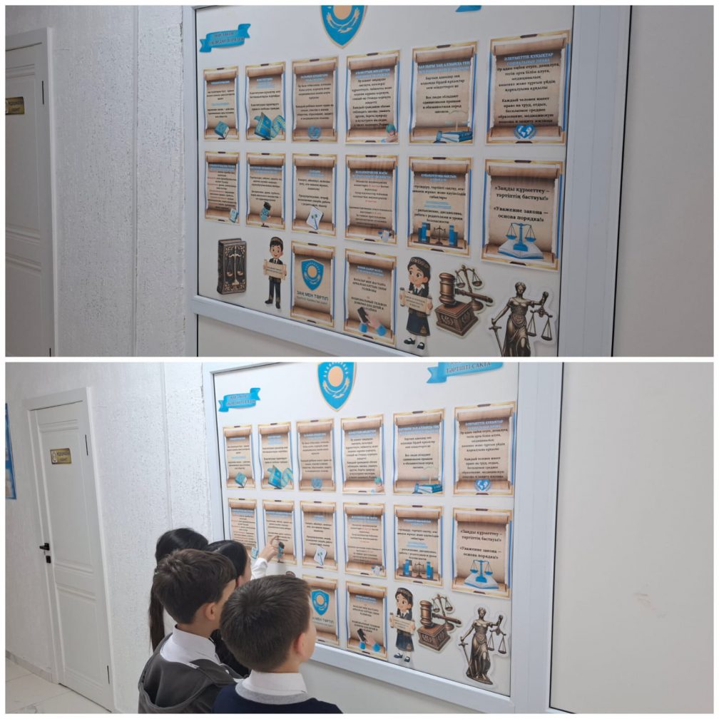 Барлықтарыңызды жаңартылған стендке назар аударуға, ондағы ақпаратты саналы әрі заңға бағынатын мінез-құлықты қалыптастыруда пайдалануға және қажет болған жағдайда сынып жетекшісіне немесе құқықтық тәрбиеге жауапты тұлғаға жүгінуге шақырамыз.